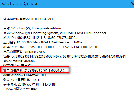 如下图所示,就是弹出的系统激活信息host页面,看看激活有效期限,长达15万天,也就是411年时间,我的天,程序员真要逆天了!