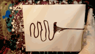 调好的黑色颜料,滴在剪好的画纸上,用吸管就这么一吹~ “风骨”就出来了有没有。