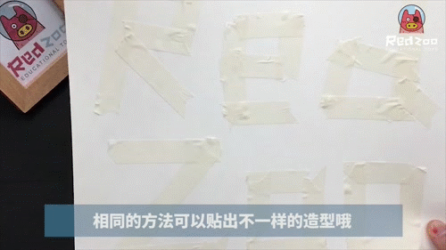 最后,见证奇迹的时刻到啦!把胶布撕下来,颜色凌乱的画面被整齐分割,出现边缘整齐的几何色块,作品完成啦!
