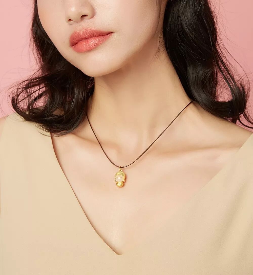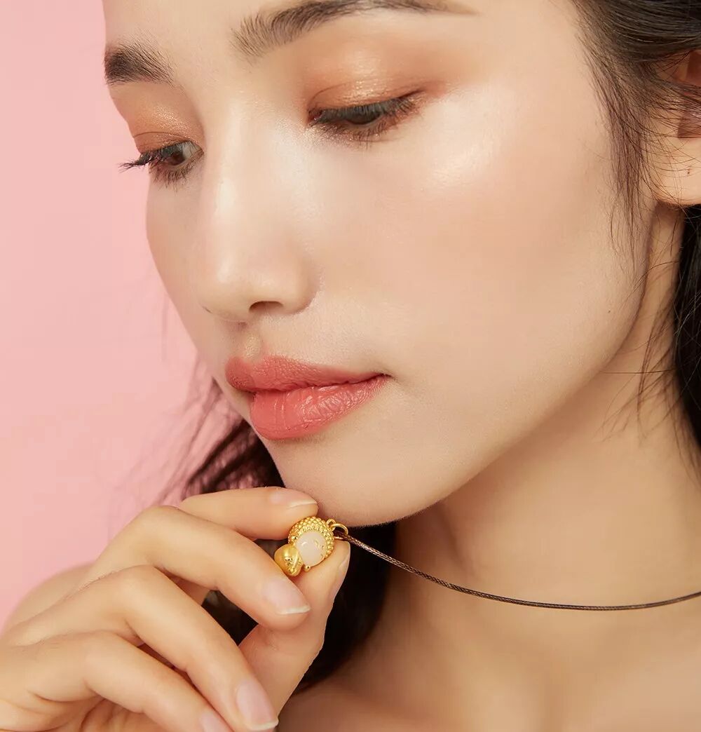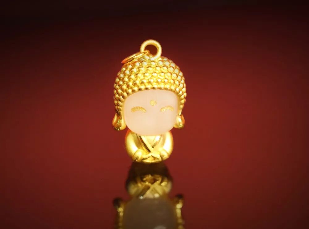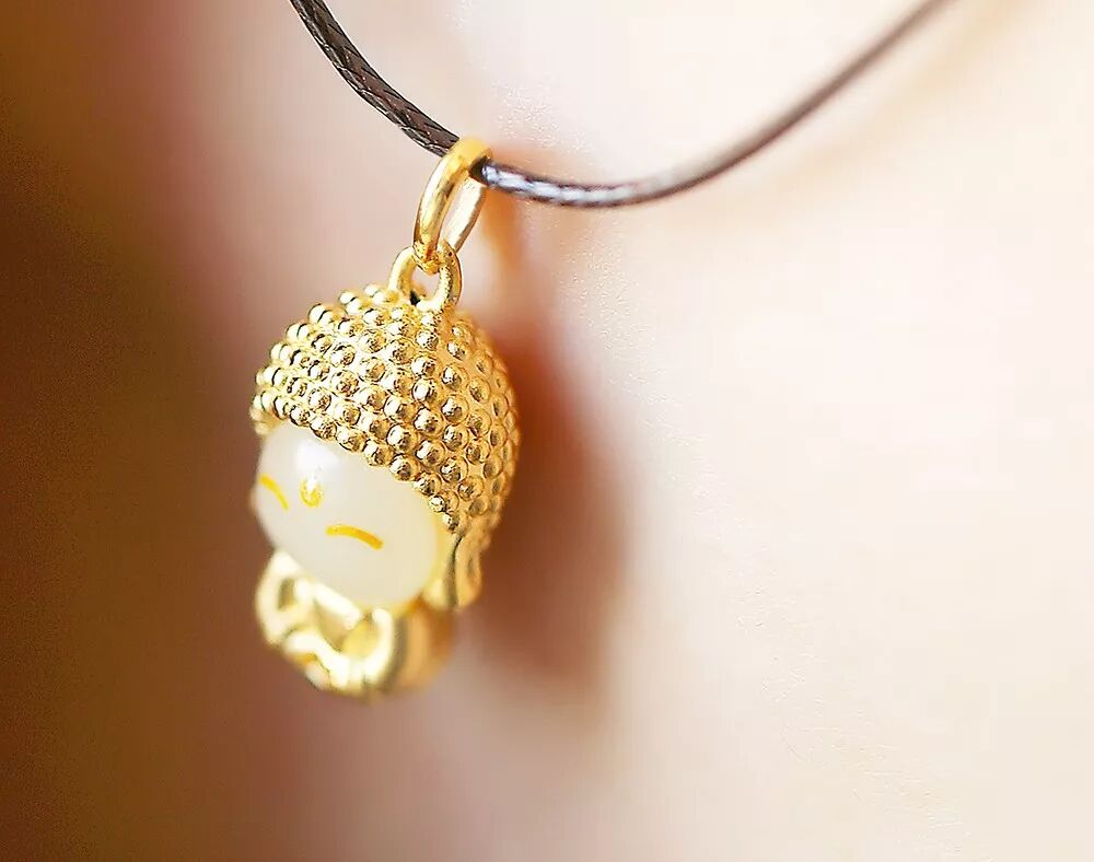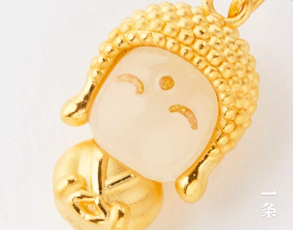 还有一款“玉面小金佛”吊坠项链,