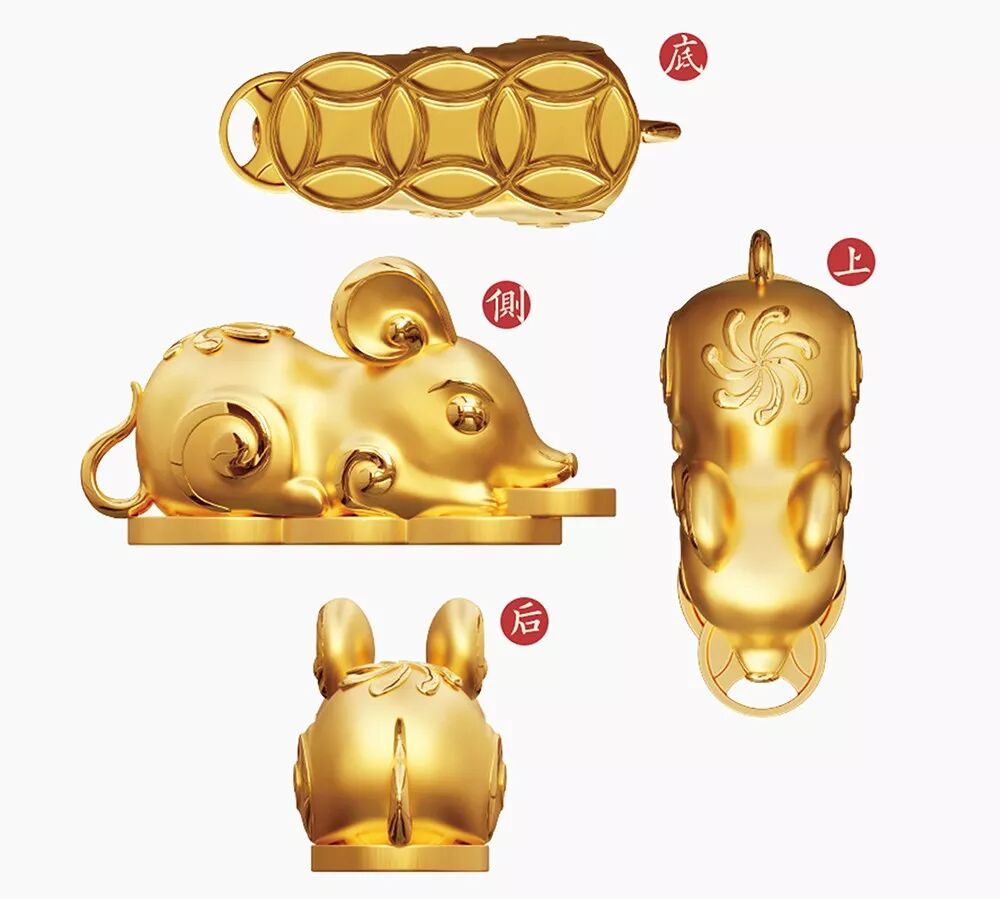 采用3D硬金工艺做成的小金鼠,细节精细,造型立体,目光炯炯,神采飞扬。
