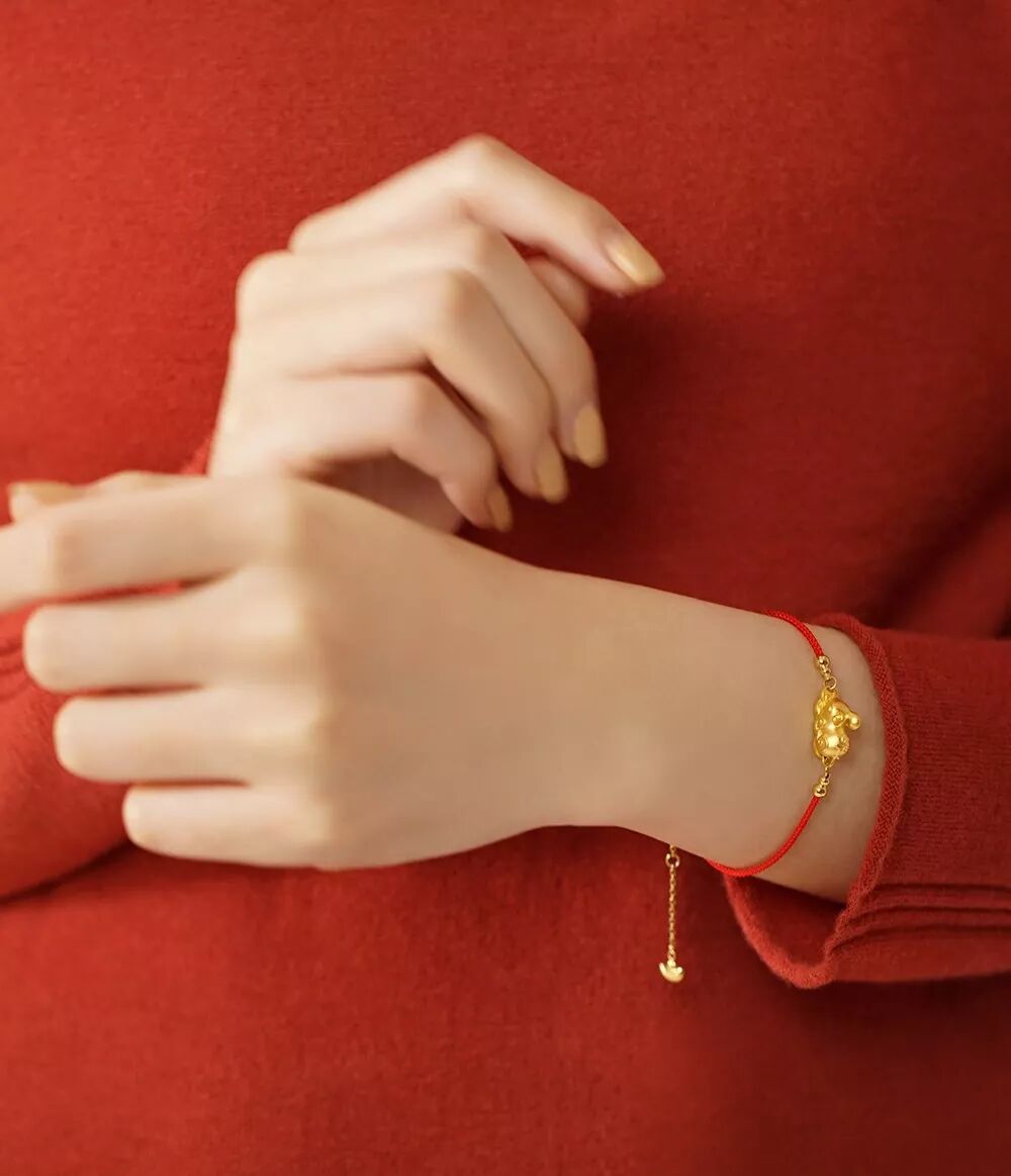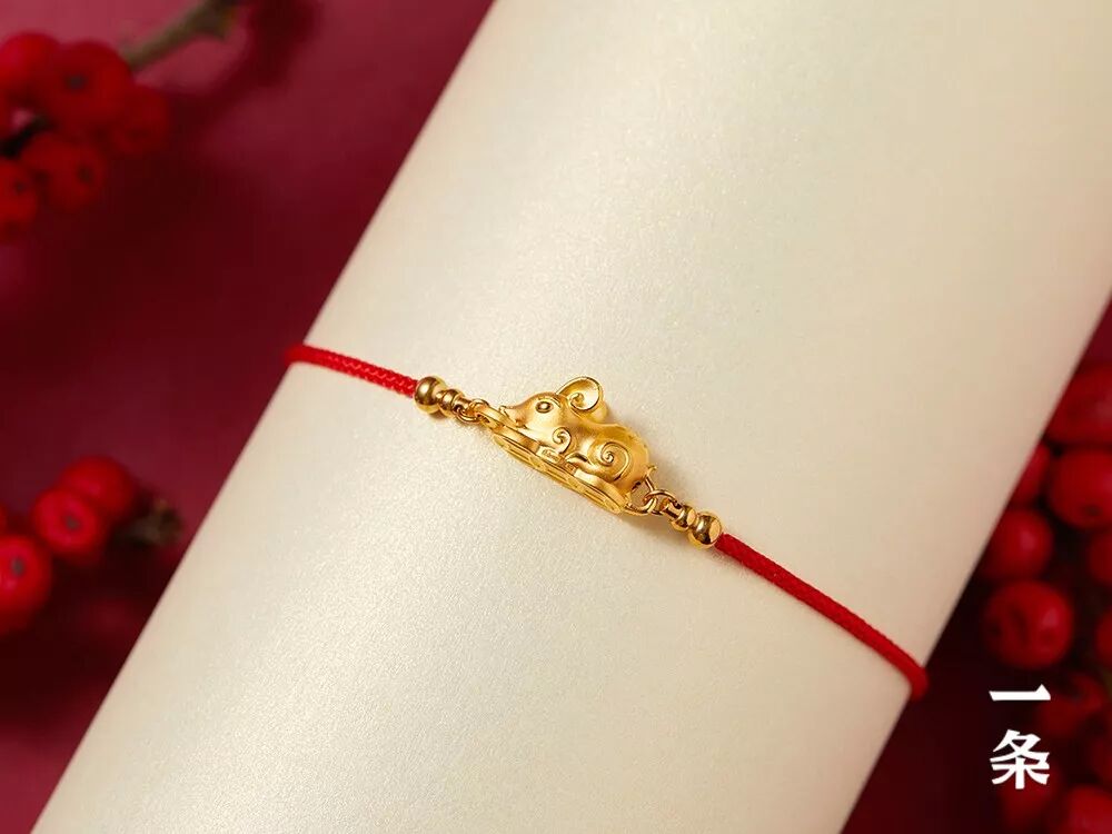 鼠年足金开运红绳