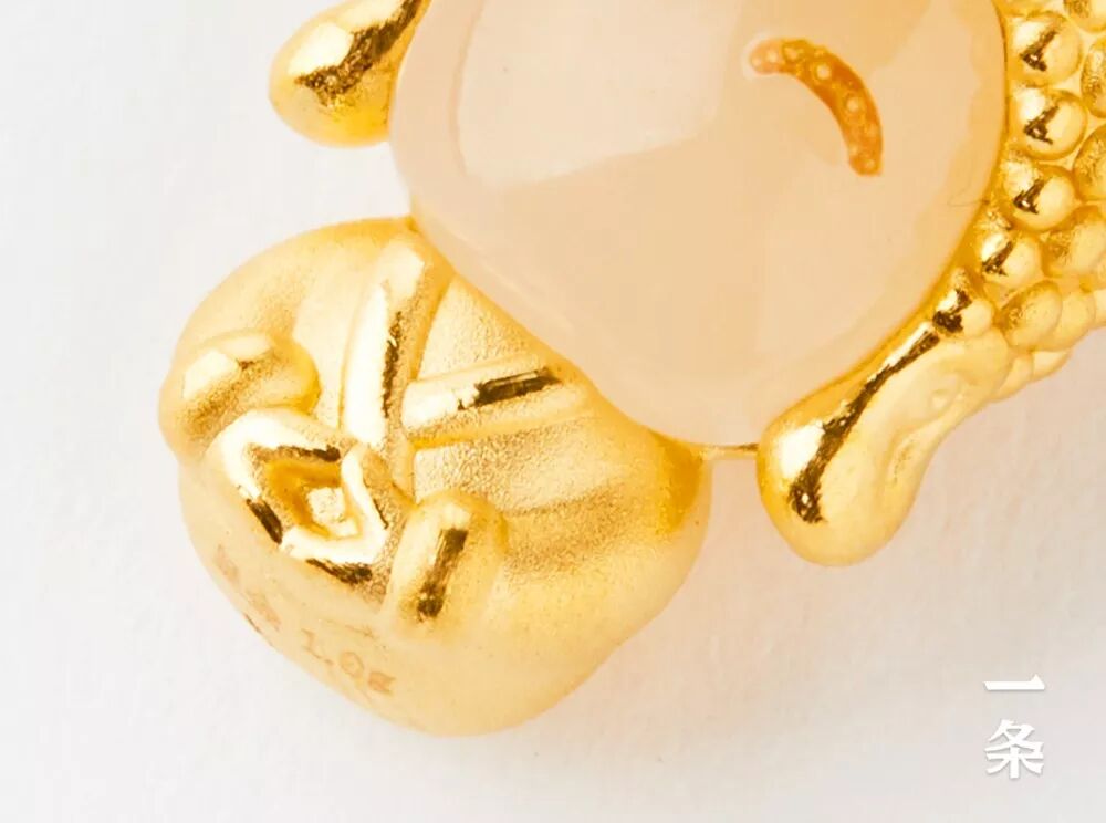 手链的小金鼠主体,采用了足金材质,含金量999‰,重0.8g。