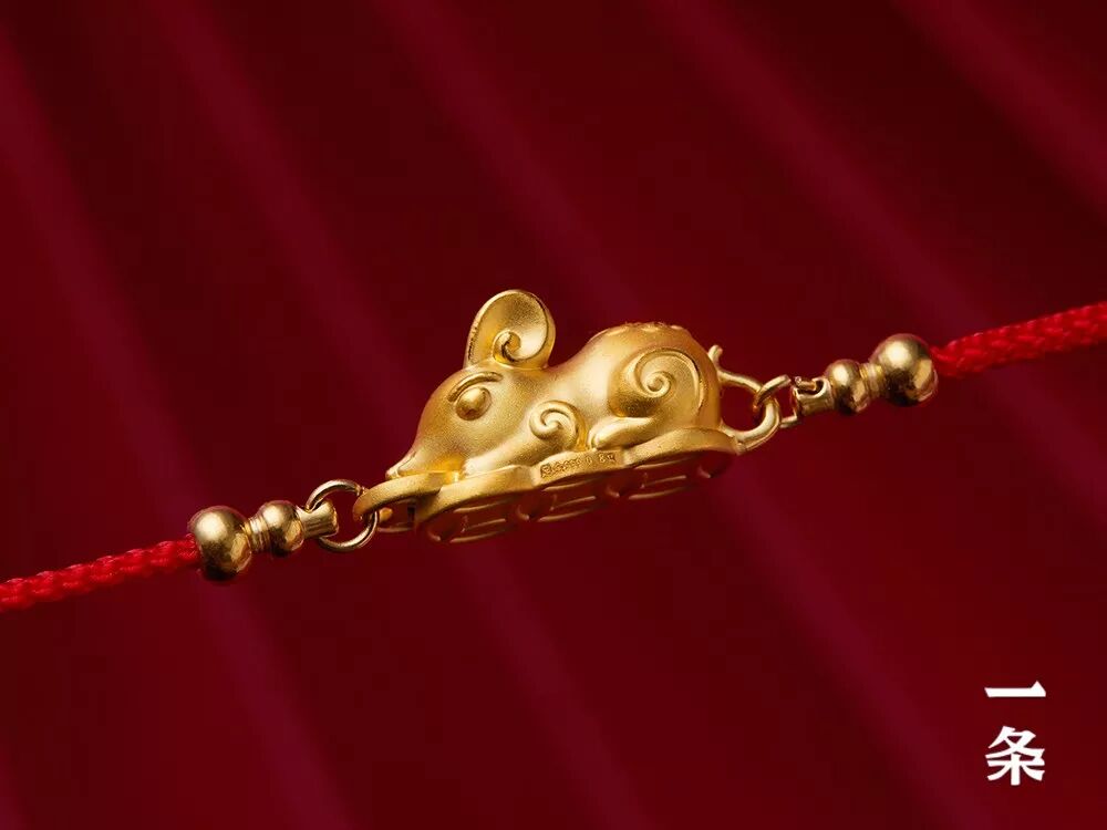 红绳上是足金做的小金鼠,活灵活现的。