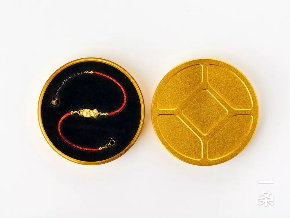 买首饰还附带一个大钱币样子的首饰盒,金灿灿的惹人喜爱,摆在桌上放点小首饰小物件,也很好看。