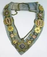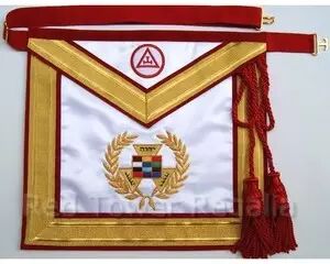 是共济会服饰中最重要的象征了,由古代石匠操作时所穿戴的小羊皮围裙转变而来,在许多共济会中,围裙被用来展示会员所处级别以及用上面的象征符号传递共济会的哲学。