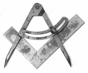 圆规(Compasses)和方矩(Square)都是石工测绘使用的工具,在共济会思想中它们代表着会员完善自身所使用的“道具”。方矩是会所导师的徽章,“安置”会员走向公民义务的正确途经,代表道德规范。