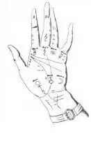 【藏手礼】【1°—3°会员握手方式】【M-hand】秘传的抓握和握手方式中,“包士”(Boaz,上图)被认为是“刚入会见习者的握手式”,据说每位共济会成员要将拇指按压在对方的第一节指关节上。至于“图布肯”(Tubulcain,中图)则代表“成为导师的过关握手式”。“狮爪”(Lion's Paw,下图)则代表“导师的真正握手”。