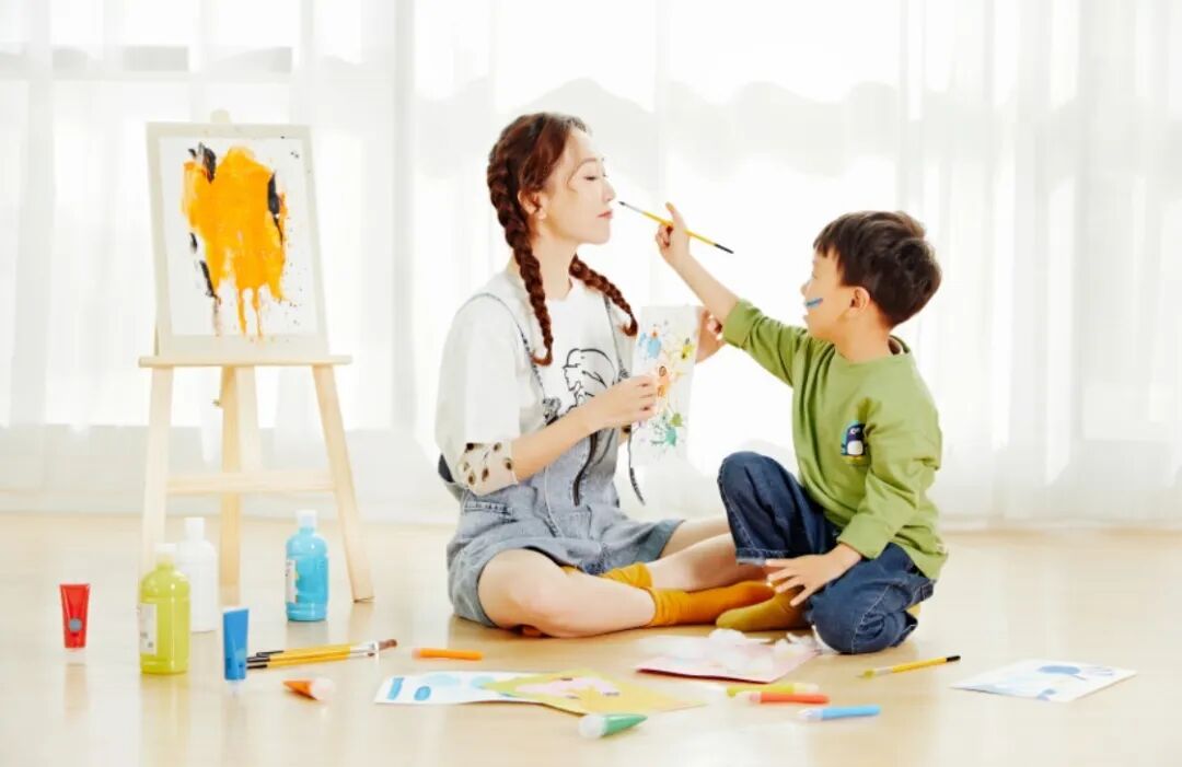 在她有了孩子“河豚宝”之后,她希望也能用艺术影响孩子,从河豚宝 1 岁多开始,就教她拿起画笔,观察世界,记录世界。