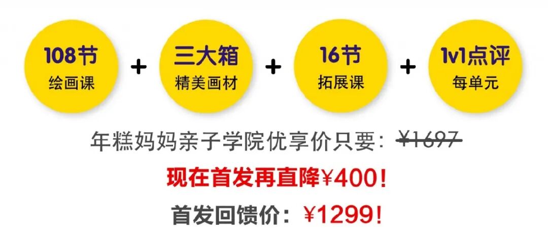 *因 L1 课程包含 7 节经典老课,所以亲子绘画/亲子手工/绘画大师课的老用户,额外可得 300 元优惠券,999 元购!