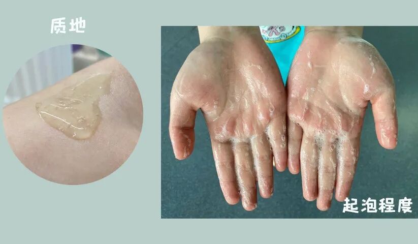 挤出来是一种透明的凝露质地,搓揉的瞬间凝露就变成了一层白色的乳霜,因为是低泡型的洗面奶所以泡泡相对较少(一个冷知识:起泡大小取决于起泡剂的添加,泡泡大小跟清洁力没有任何关系)。