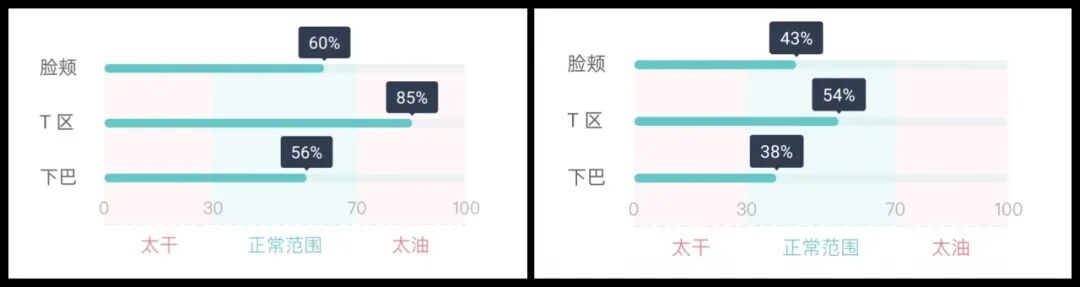 👇使用前后脸部各个局部的水油状况对比照,洗后很直观的看到T区的皮肤状况回到正常范围。
