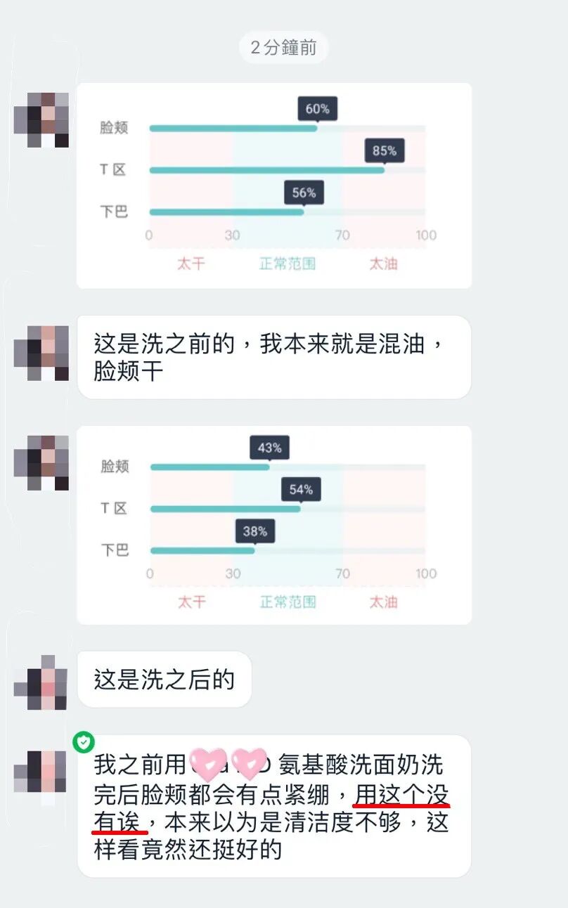 试用官们也反馈到洗完脸不拔干、不紧绷,很清透、很舒爽的感觉。