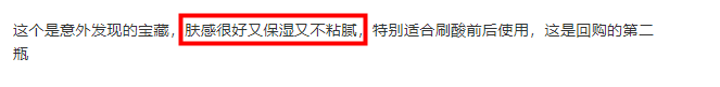 “肤感很好又保湿又不粘腻”