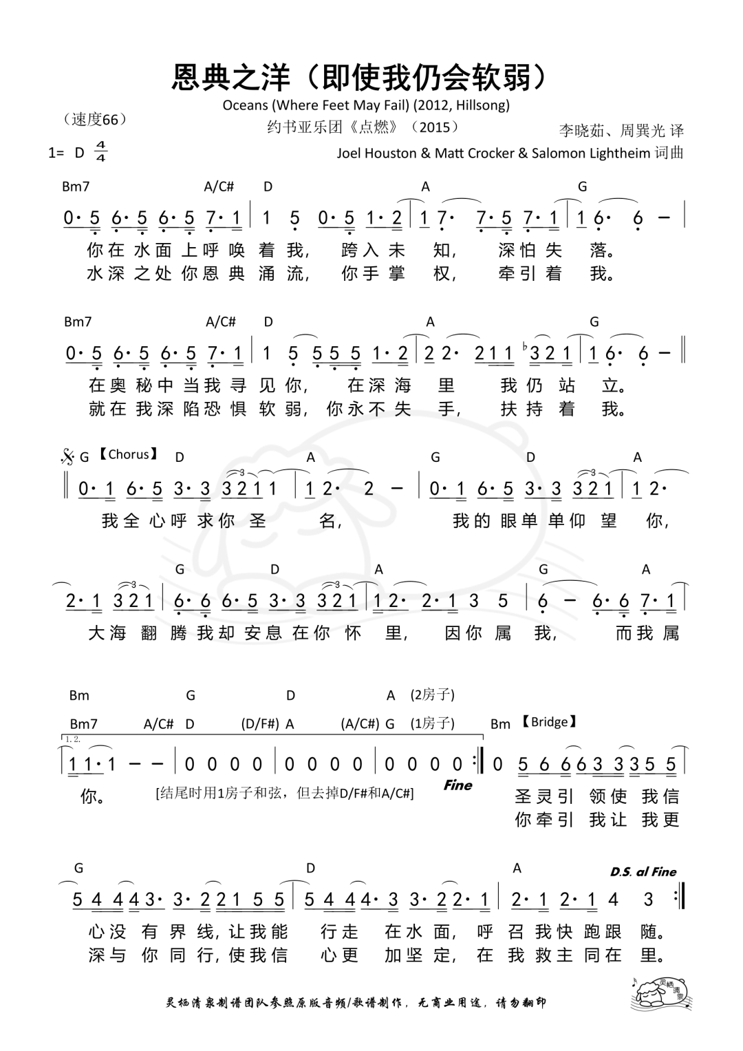 +- 首页 约书亚敬拜 正文 音频播放地址: 视频播放地址: 【Verse 1】 你在水面上呼唤着我 跨入未知 深怕失落 在奥秘中当我寻见你 在深海里 我仍站立 【Verse 2】 水深之处 你恩典涌流 你手掌权 牵引着我 就在我深陷恐惧软弱 你永不失手 扶持着我 【Chorus】 我全心呼求你圣名 我的眼单单仰望你 大海翻腾我却安息 在你怀里 因你属我 而我属你 【Bridge】 圣灵引领 使我信心没有界线 让我能行走在水面 呼召我快跑跟随 你牵引我 让我更深与你同行 使我信心更加坚定 在我救主同在里 歌谱: HTBB敬拜跨越 KUA MUSIC约书亚敬拜火把音乐天堂敬拜GoodTv环球敬拜 收藏 分享 链接