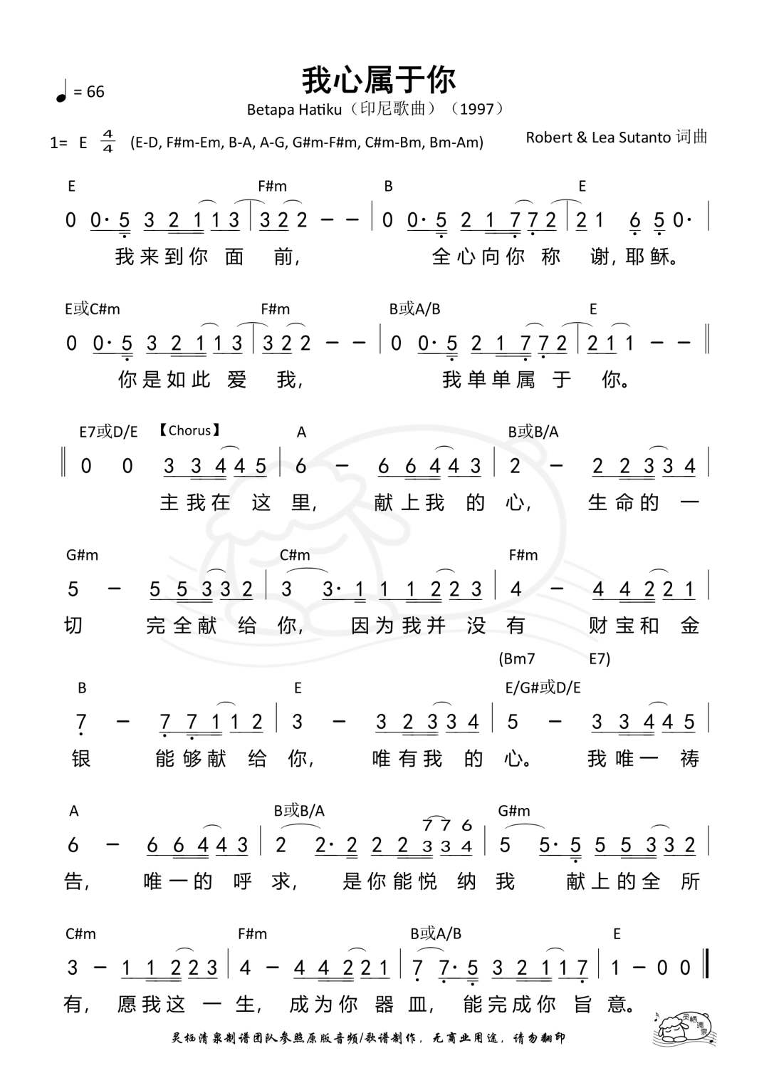 +- 首页 赞美诗歌 正文 音频播放地址: 视频播放地址: 歌名 | 我心属于你 原文名 | Betapa Hatiku 词曲 | Robert & Lea Sutanto (1997)(印尼) 【Verse】 我来到你面前 全心向你称谢 耶稣 你是如此爱我 我单单属于你 【Chorus】 主我在这里 献上我的心 生命的一切 完全献给你 因为我并没有 财宝和金银 能够献给你 唯有我的心 我唯一祷告 唯一的呼求 是你能悦纳我 献上的全所有 愿我这一生 成为你器皿 来完成你旨意 备用音频: 歌谱:(E调) 歌谱:(D调) 赞美诗歌未整理以斯拉盛晓玫祝瑞莲生命河灵粮堂小羊诗歌Jesus Image天韵合唱团新酒使命团我心旋律JLSS BlessedThe Hope佳音 收藏 分享 链接