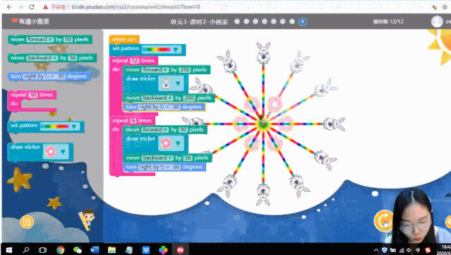 第1节课,Ta掌握了编程里的“指令”、“序列”,并对