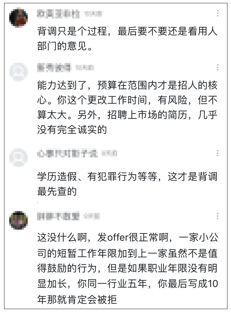 也有网友分析道:人力部门自己也有考核的,一般背调就是走个形式,所以小瑕疵不影响,当然学历学位造假之类的除外。