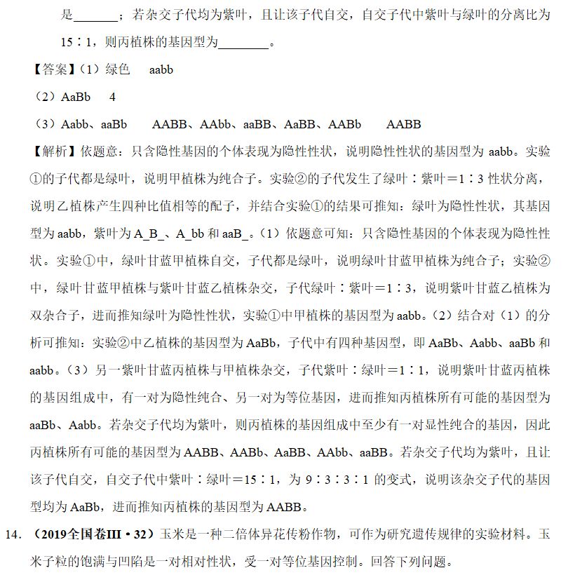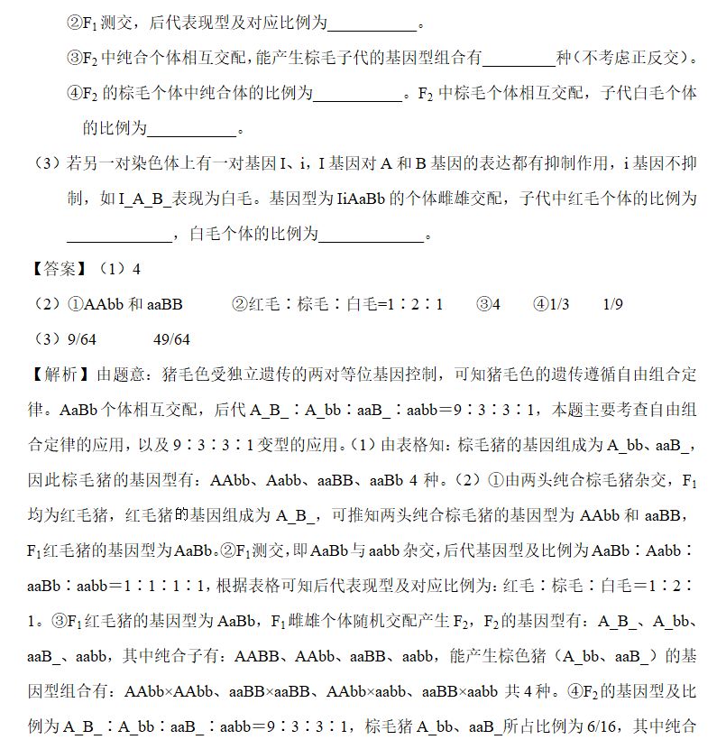 ②复等位基因:一对相对性状受受两个以上的等位基因控制(但每个个体依然只含其中的两个)的现象,先根据题干给出的信息确定出不同表型的基因型,再答题。