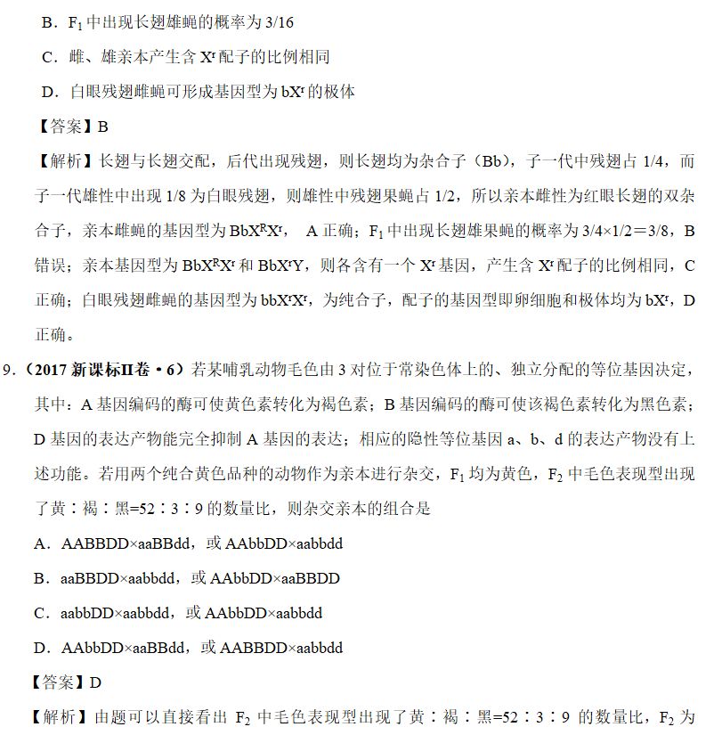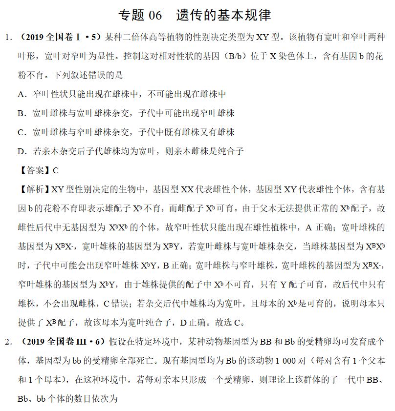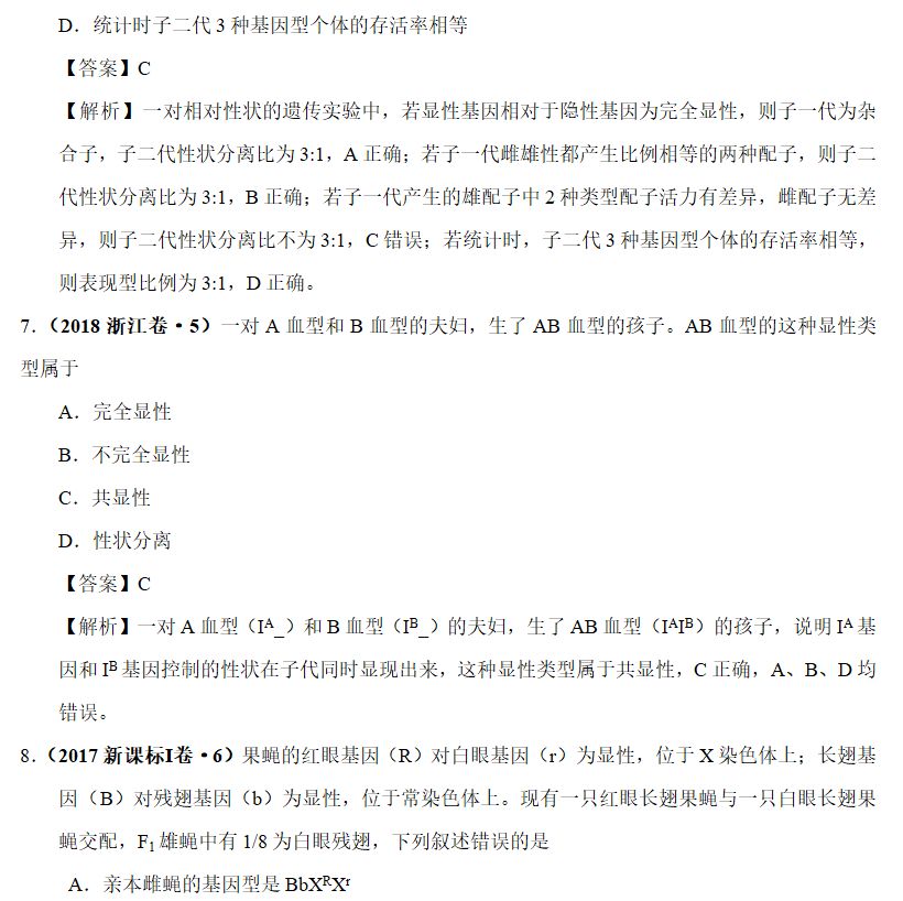 ⑤致死现象,如某基因纯合时胚胎致死,可以根据子代的分离比的偏离情况分析得出,注意该种情况下得到的子代比例的变化。抑或是发育到某阶段才会出现的致死现象,计算时注意相应比例的变化;