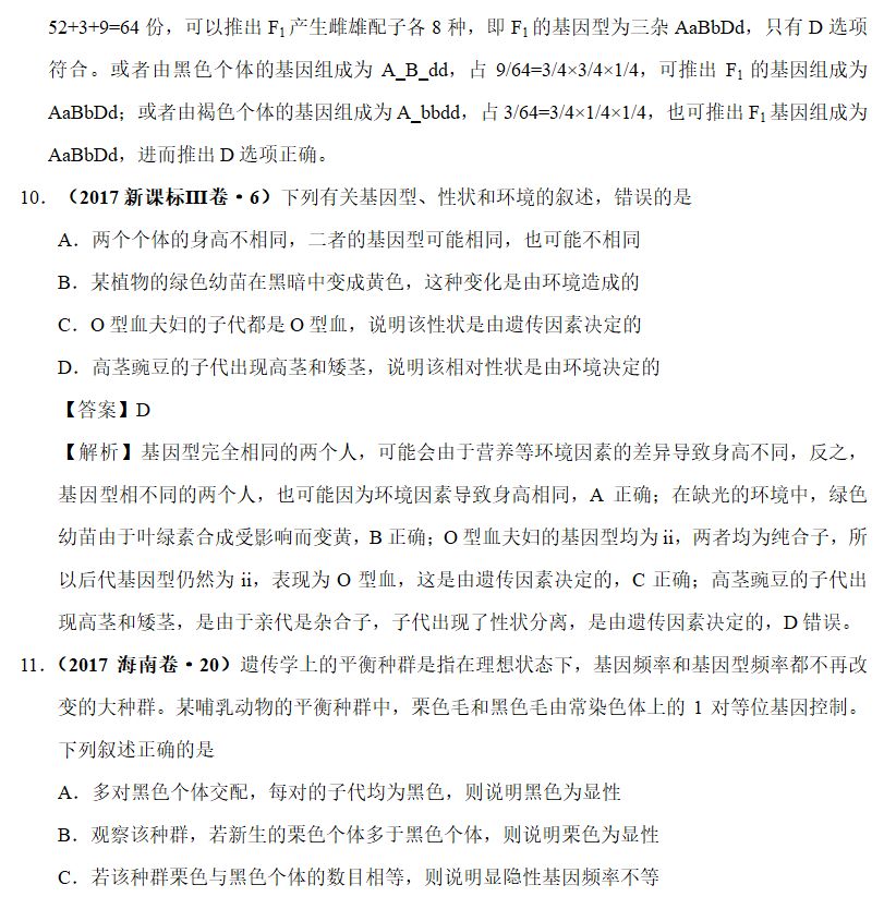 注意:若对自交或者自由交配的后代进行了相应表型的选择之后,注意子代相应比例的改变。