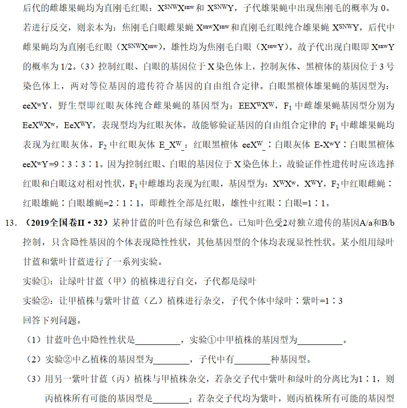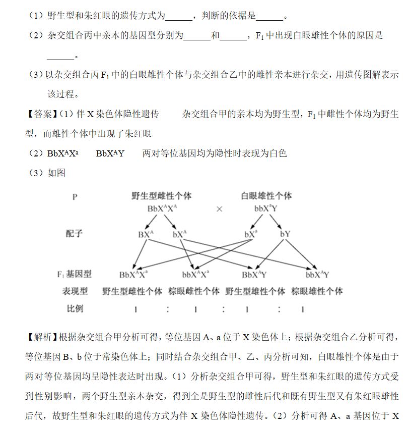 书写要求:①亲代的表现型、基因型;②配子的基因型种类;③子代的基因型、表现型(包括特殊情况的指明)、比例;④基因型的规范书写:常染色体上的、X染色体上的(包括同源或者非同源区段)(前常后X),要用题干中提到的字母,不可随意代替;⑤相关符号的正确书写。