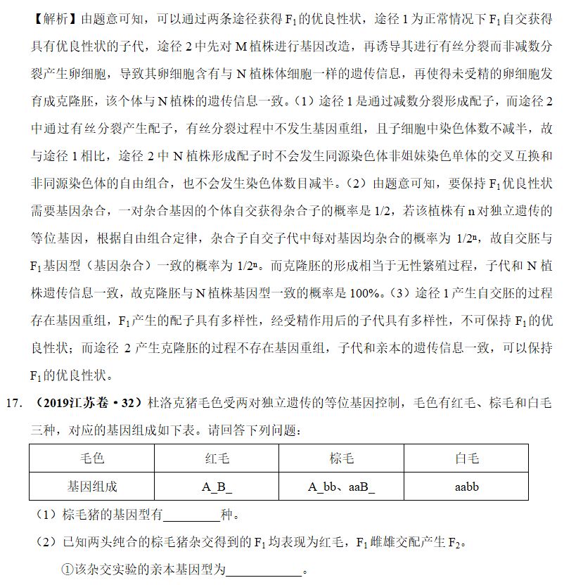 ②自由交配:推荐使用分别求出双亲产生的配子的种类及比例,再进行雌雄配子的自由结合得出子代(若双亲都有多种可能的基因型,要讲各自的系数相乘)。