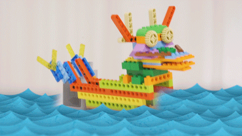 还有可爱的龙舟,加入马达,能自动划起来。👇