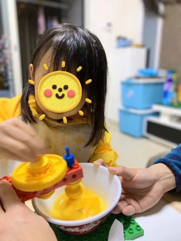 L2 的造型,更多的生活实际结合起来。看,我们的小粉丝,在家做了打蛋器,跟爸爸一起打鸡蛋呢,是不是很酷~