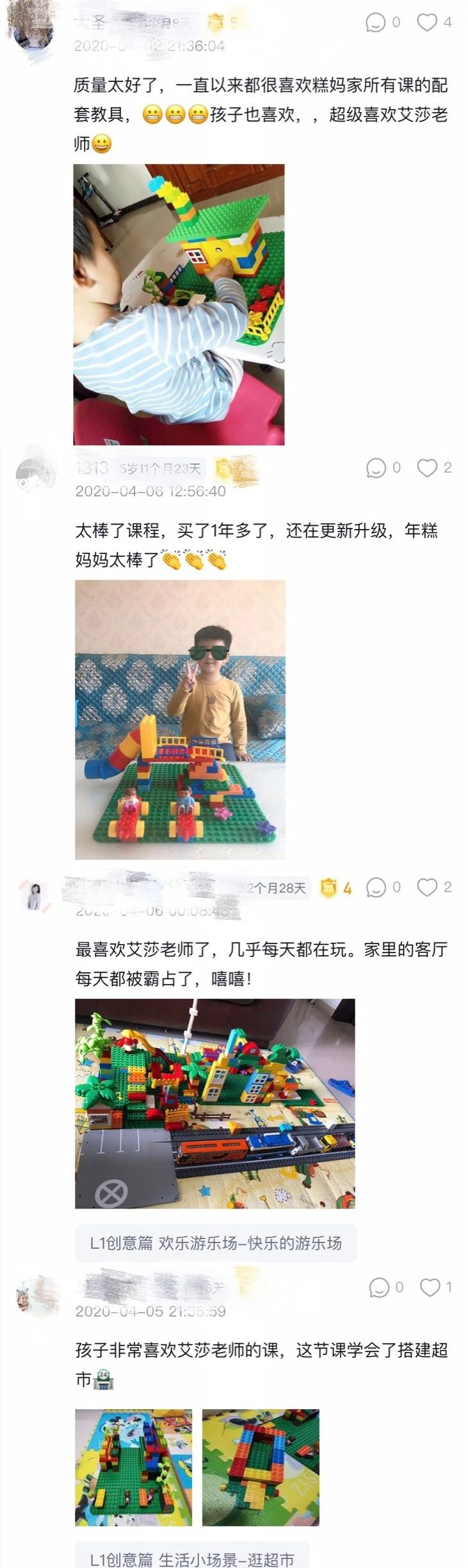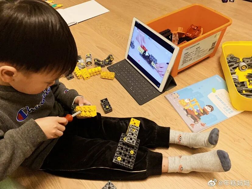 在过去的两年,我们把线下火爆的积木班搬到了线上,在年糕妈妈亲子学院推出了