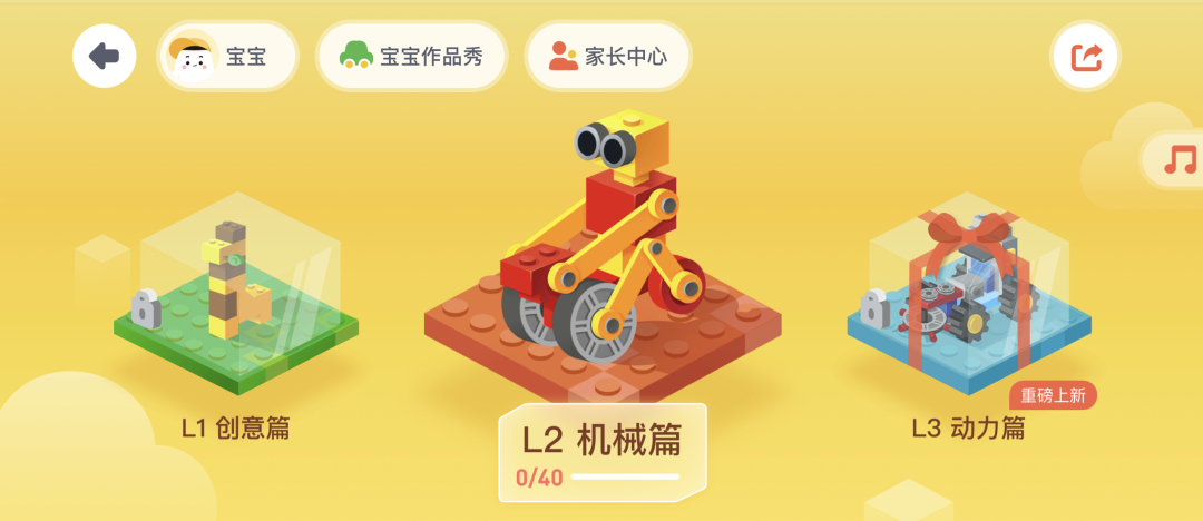 2~6 岁宝宝研发的积木拼搭体系课程,涵盖线下 5 年的课程内容。