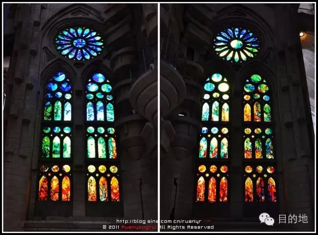 ▲教堂所有的窗子都沿用了传统哥特式建筑的花窗玻璃,这些窗子既高又大,几乎承担起了墙体的功能