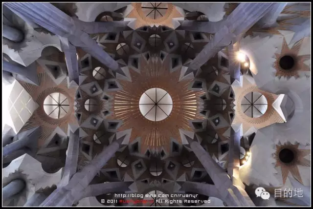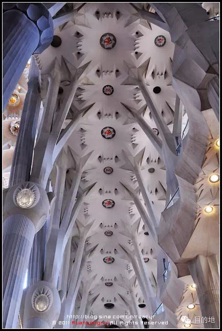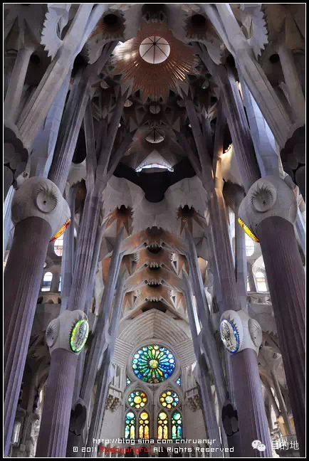 高迪曾经说:“直线属于人类,而曲线归于上帝。”圣家族大教堂的设计完全没有直线和平面,而是以螺旋、锥形、双曲线、抛物线各种变化组合成充满韵律动感的神圣建筑!