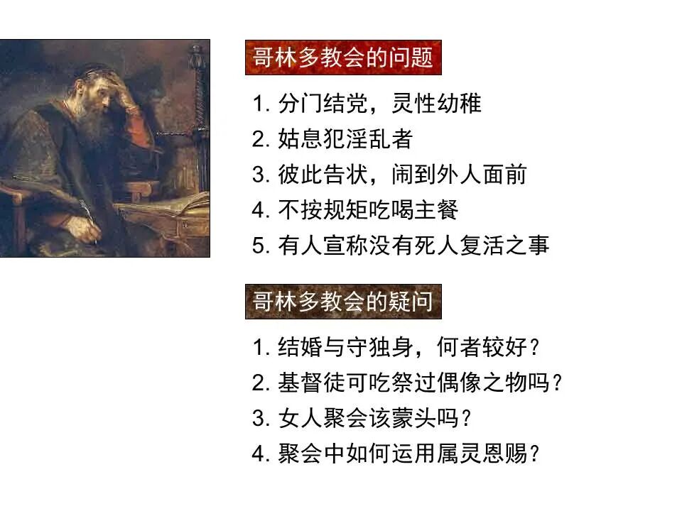 当年的哥林多城有大约700,000人(其中三分之二是奴隶)他们深受希腊的哲学思想所影响。哥林多城有一个大的室外场地,可以容纳20,000人,这里的体育发展只在奥林匹克之下。城中有亚富罗底特庙(Temple of Aphrodite),是出名的希腊爱神,庙中有1,000名庙妓,哥林多城也因此而出名。他们被称为哥林多(Korinthiazomai)就是他们淫乱的代号。