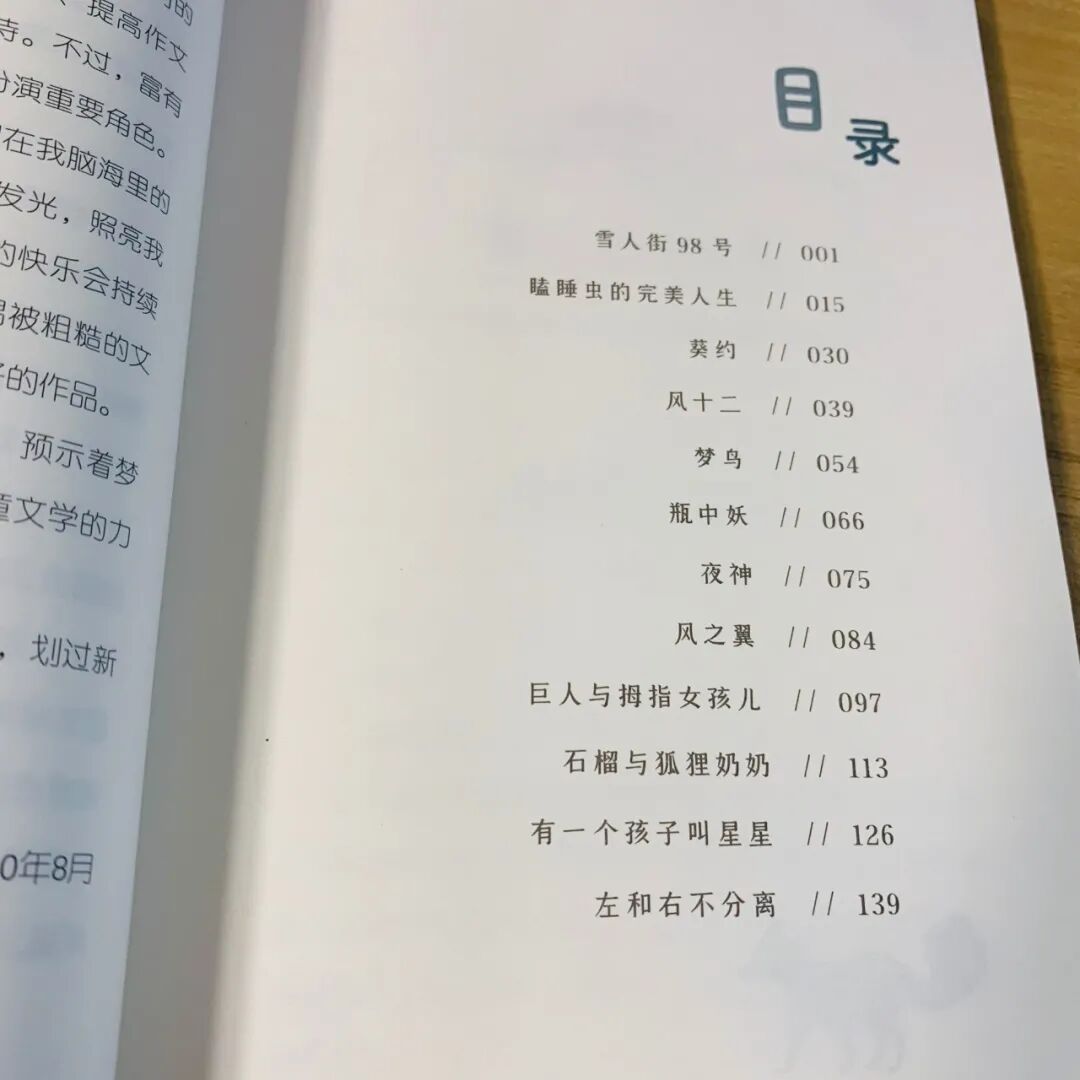 包括《瞌睡虫的完美人生》《葵约》《风十二》《瓶中妖》《夜神》《风之翼》《有一个孩子叫星星》等,里面有找不到自身价值的瞌睡虫,遵守约定不远万里赴约的葵花精灵;言而有信的风十二,渴望成长的瓶中小妖,无比温暖的夜神,患孤独症的星星……▼