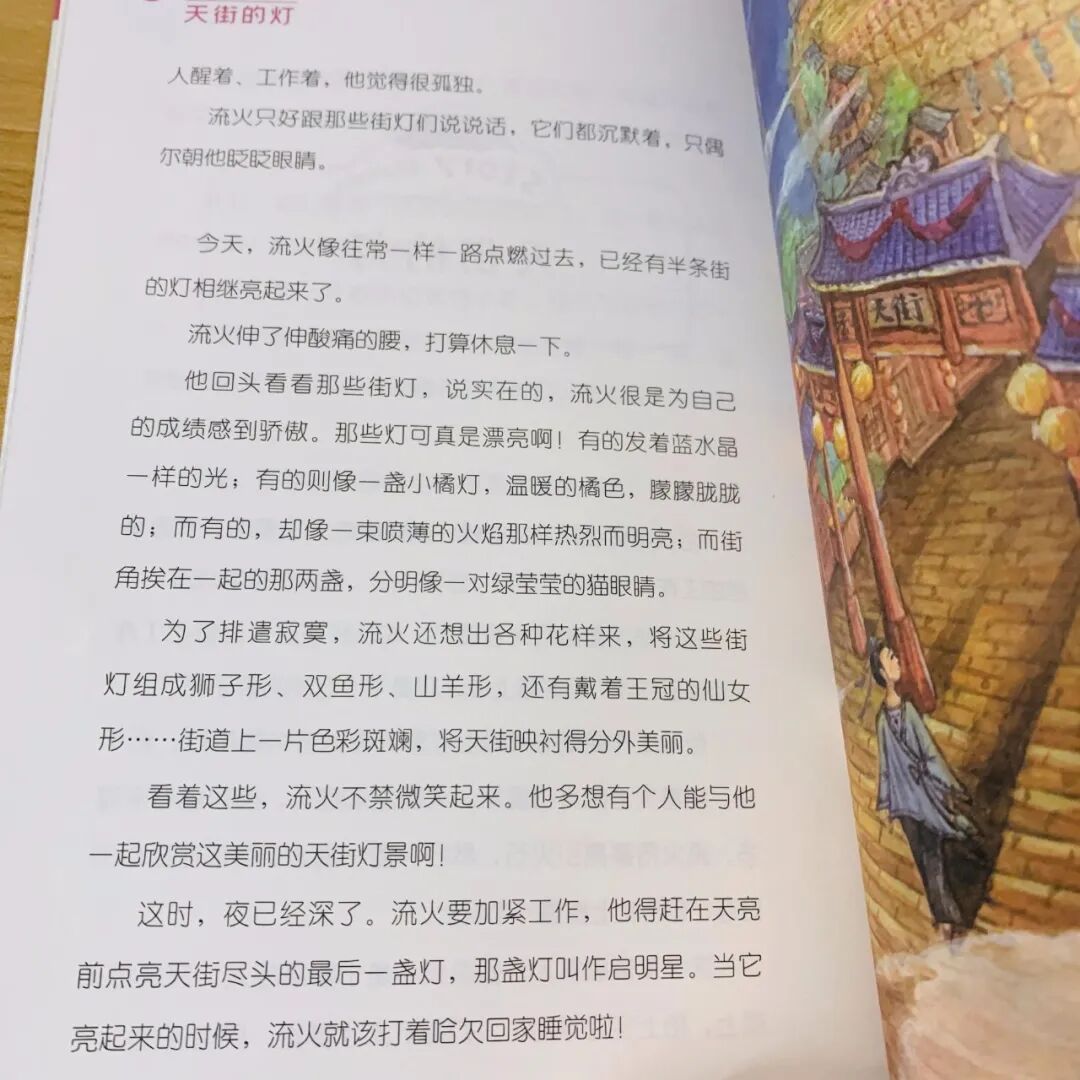 其次这套书的的文字生动有趣,也有很多写作技巧,比如在《天街的灯》中,描写街上的灯这一段:▼