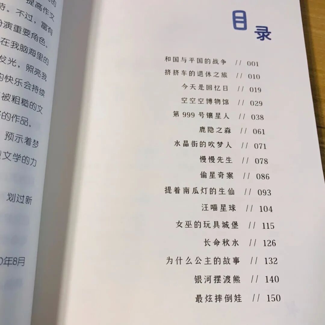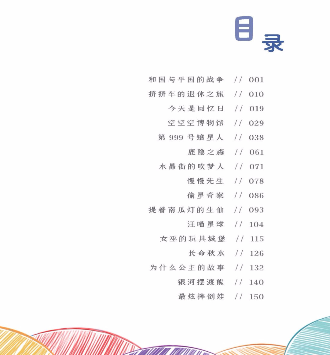 包括《和国与平国的战争》《挤挤车的退休之旅》《空空空博物馆》《第999号镶星人》《水晶街的吹梦人》《女巫的玩具城堡》《长命秋水》《为什么公主的故事》《银河摆渡熊》《最炫摔倒娃》等,里面有和国与平国之间爆发的快乐战争,从日复一日的工作中找到了快乐的镶星人,又能够带给人们幸福的吹梦人,有又凶又搞笑的女巫……▼
