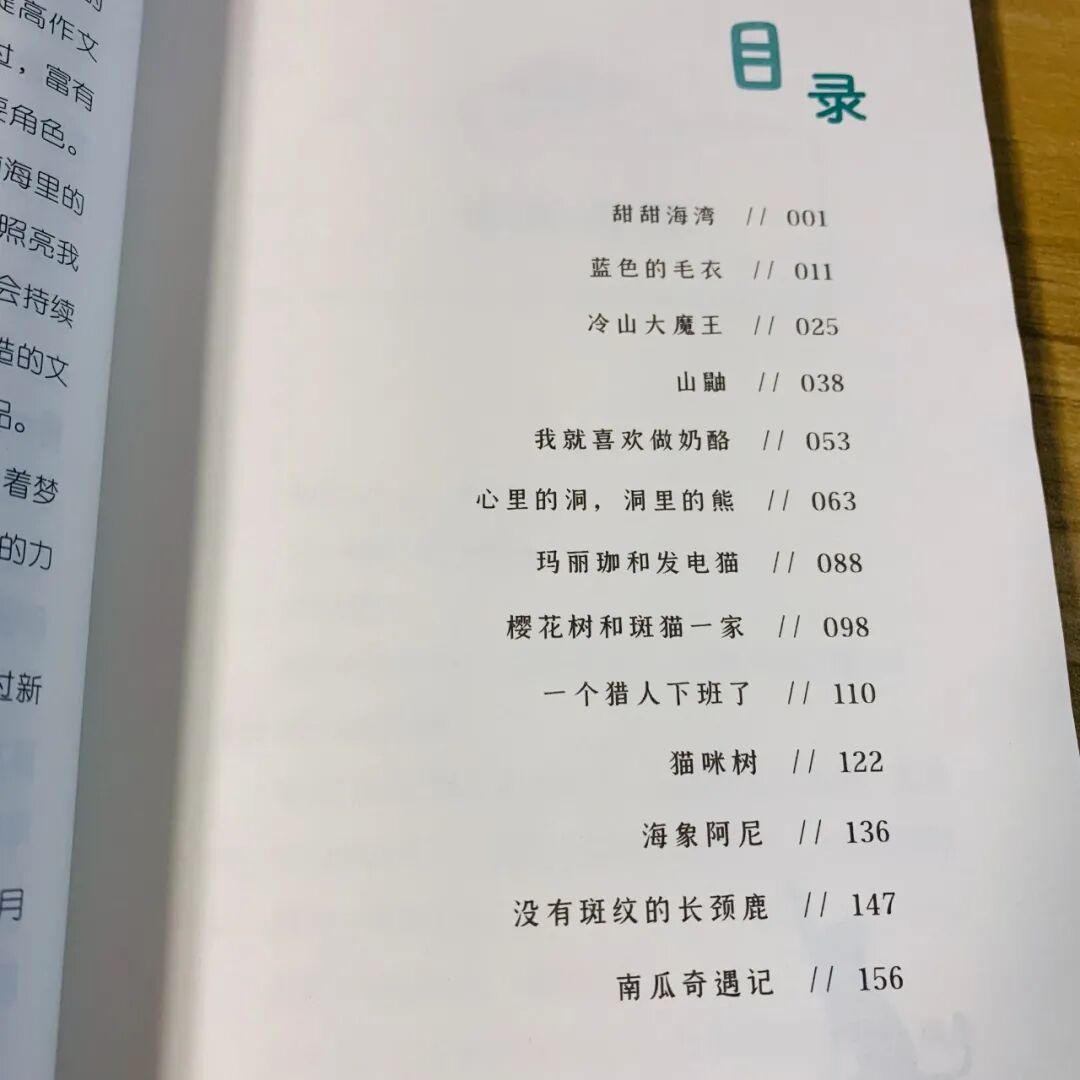 包括《甜甜海湾》《蓝色的毛衣》《冷山大魔王》《山鼬》《我就喜欢做奶酪》《心里的洞,洞里的熊》《玛丽珈和发电猫》《樱花树和斑猫一家》《一个猎人下班了》《猫咪树》《海象阿尼》《没有斑纹的长颈鹿》《南瓜奇遇记》等,里面有誓把弟弟和爸爸妈妈拯救回来的小姐姐,有外表冷酷、内心善良的冷山大魔王,有独独爱做奶酪的熊,有勇于独立成长的小猫……▼