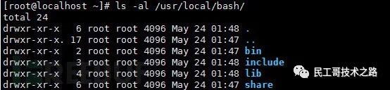 编译安装,编译过程不做详细说明,本文中使用的编译参数为:./configure --prefix=/usr/local/bash,安装成功后对应目录如下: