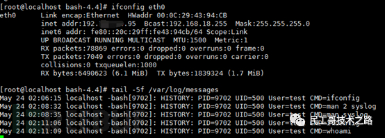 查看效果,我们发现history记录已经写到了/var/log/message中。