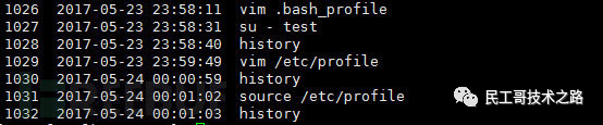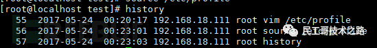 要使配置立即生效请执行source /etc/profile,我们再查看history记录,可以看到记录中带上了命令执行时间。
