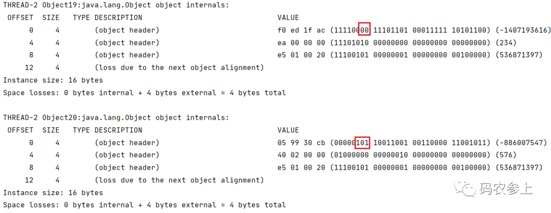 System.out.println("THREAD-2 Object"+(i+1)+":"+ClassLayout.parseInstance(o).toPrintable());
