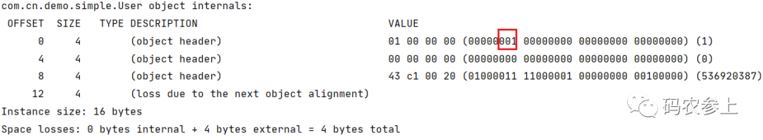 System.out.println("--END--:"+ClassLayout.parseInstance(user).toPrintable());