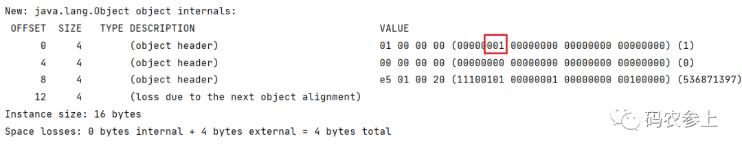 System.out.println("New: "+ClassLayout.parseInstance(new Object()).toPrintable());