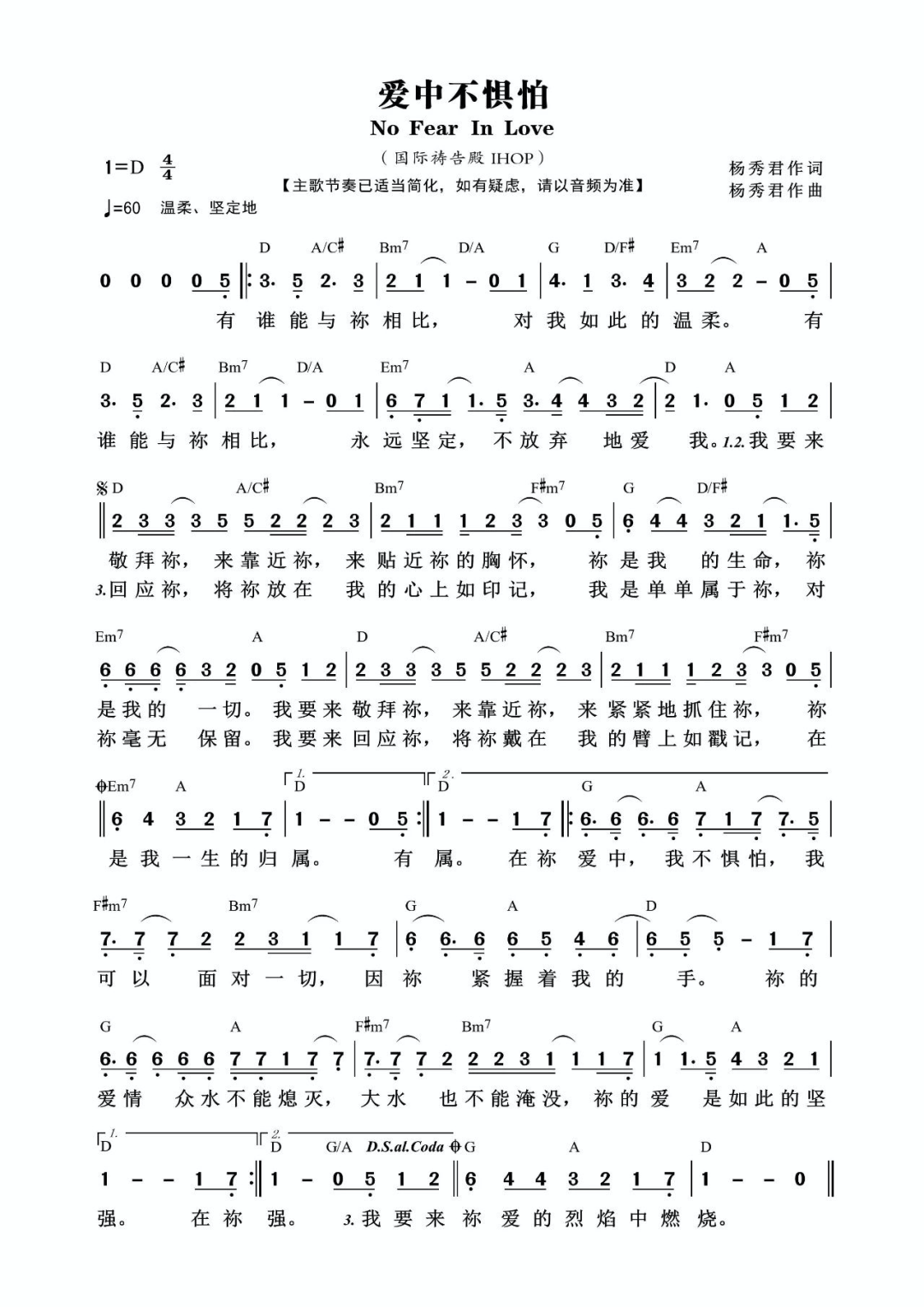 ▷ 每天一首歌谱+音频《爱中不惧怕》