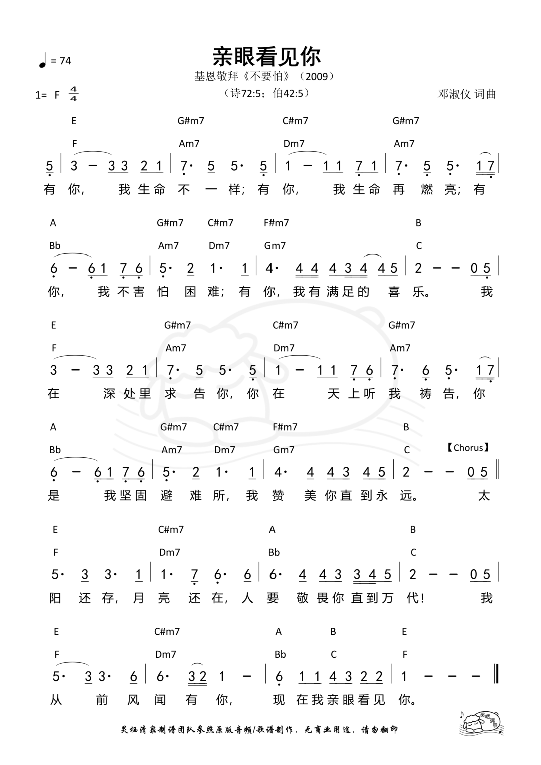 +- 首页 未整理 正文 亲眼看见你 ©️ 基恩敬拜 歌名 | 亲眼看见你 Artist | 基恩敬拜 专辑 | 《不要怕 》(2009) 词曲 | 邓淑仪 歌词 【Verse】 有你 我生命不一样 有你 我生命再燃亮 有你 我不害怕困难 有你 我有满足的喜乐 我在 深处里求告你 你在 天上听我祷告 你是 我坚固避难所 我赞美你直到永远 【Verse】 太阳还存 月亮还在 人要敬畏你直到万代 我从前风闻有你 现在我亲眼看见你 请支持基恩敬拜:https://agwmm.org/supportus/ 赞美诗歌未整理以斯拉盛晓玫祝瑞莲生命河灵粮堂小羊诗歌Jesus Image天韵合唱团新酒使命团我心旋律JLSS BlessedThe Hope佳音 赞美之门 收藏 分享 链接