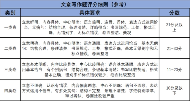 只要考生的答案符合要求,结构清晰,立意明确,语言流畅,分析合理,就可以给以对应的分数。近年来的作文评分要点主要体现在以下几个方面:立意或观点、材料结合程度、结构层次、语言表达、纸面整洁程度。