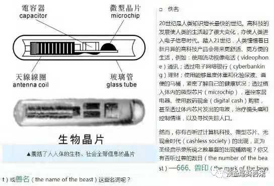 有人说人体芯片和兽的印记没有半毛钱的关系,人体芯片只能给生活带来方便。让我们从人体芯片的构造和 机能来看看,人体芯片和兽的印记以及 敌基督的统治 到底有没有关系。