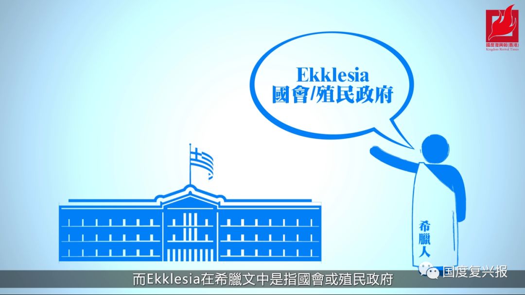 在希腊文中「Ekklesia」指的是国会或殖民政府,有立法院、治理团队﹑军队、战士的概念,所以,教会是一个被呼召出来治理的团体,有着影响一个地域的权柄。