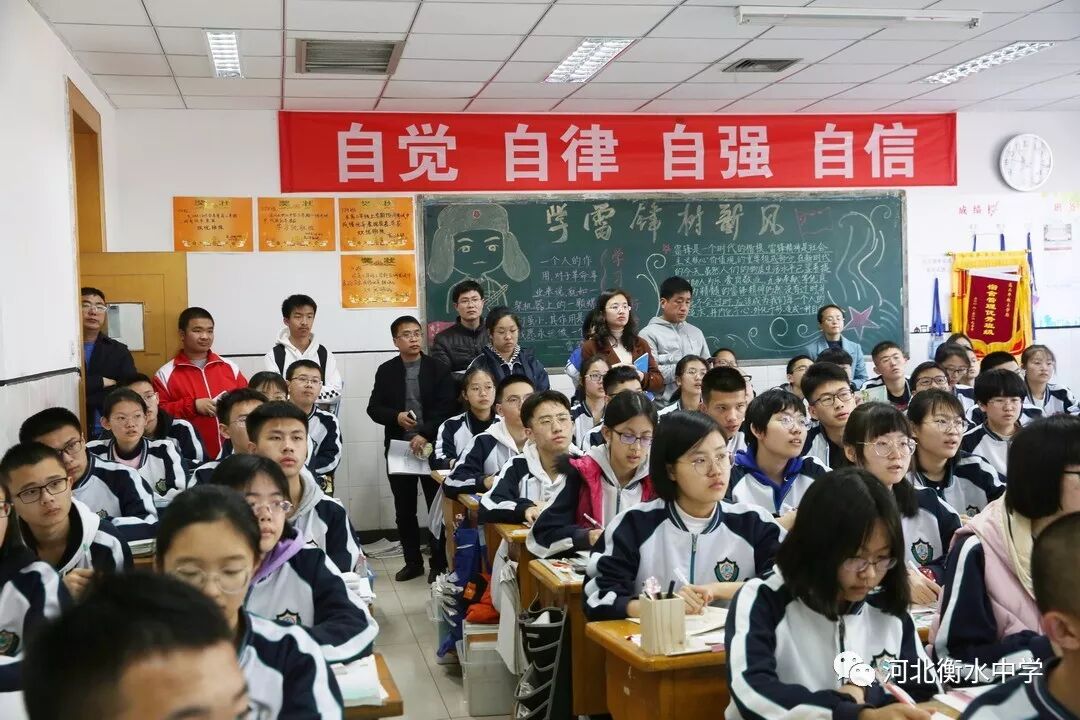 衡中上课禁止以下行为:严禁拖堂、看表、朝外看、擦眼镜、翘二郎腿,上课转笔。发呆、吃零食、撕纸都会被记录,扣掉班级量化考核的分数。自习课不能站起,如果想趁机偷懒走神,在本子上画画或者写点无关紧要的东西,根本逃不过教室的高清摄像头。一旦被抓,违纪名单就会贴在学校里,被通报批评。
